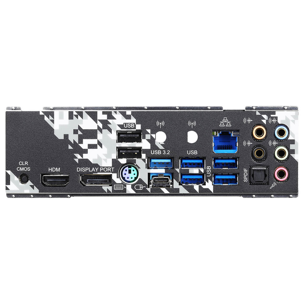 – 2 x Antenna Mounting Points – 1 x PS/2 Mouse/Keyboard Port – 1 x HDMI Port – 1 x DisplayPort 1.4 – 1 x Optical SPDIF Out Port – 1 x USB 3.2 Gen2 Type-A Port (10 Gb/s) (Supports ESD Protection) – 1 x USB 3.2 Gen2 Type-C Port (10 Gb/s) (Supports ESD Protection) – 4 x USB 3.2 Gen1 Ports (ASMedia ASM1074 hub) (Supports ESD Protection) – 2 x USB 2.0 Ports (Supports ESD Protection) – 1 x RJ-45 LAN Port with LED (ACT/LINK LED and SPEED LED) – 1 x Clear CMOS Button – HD Audio Jacks: Rear Speaker / Central / Bass / Line in / Front Speaker / Microphone (Gold Audio Jacks) |