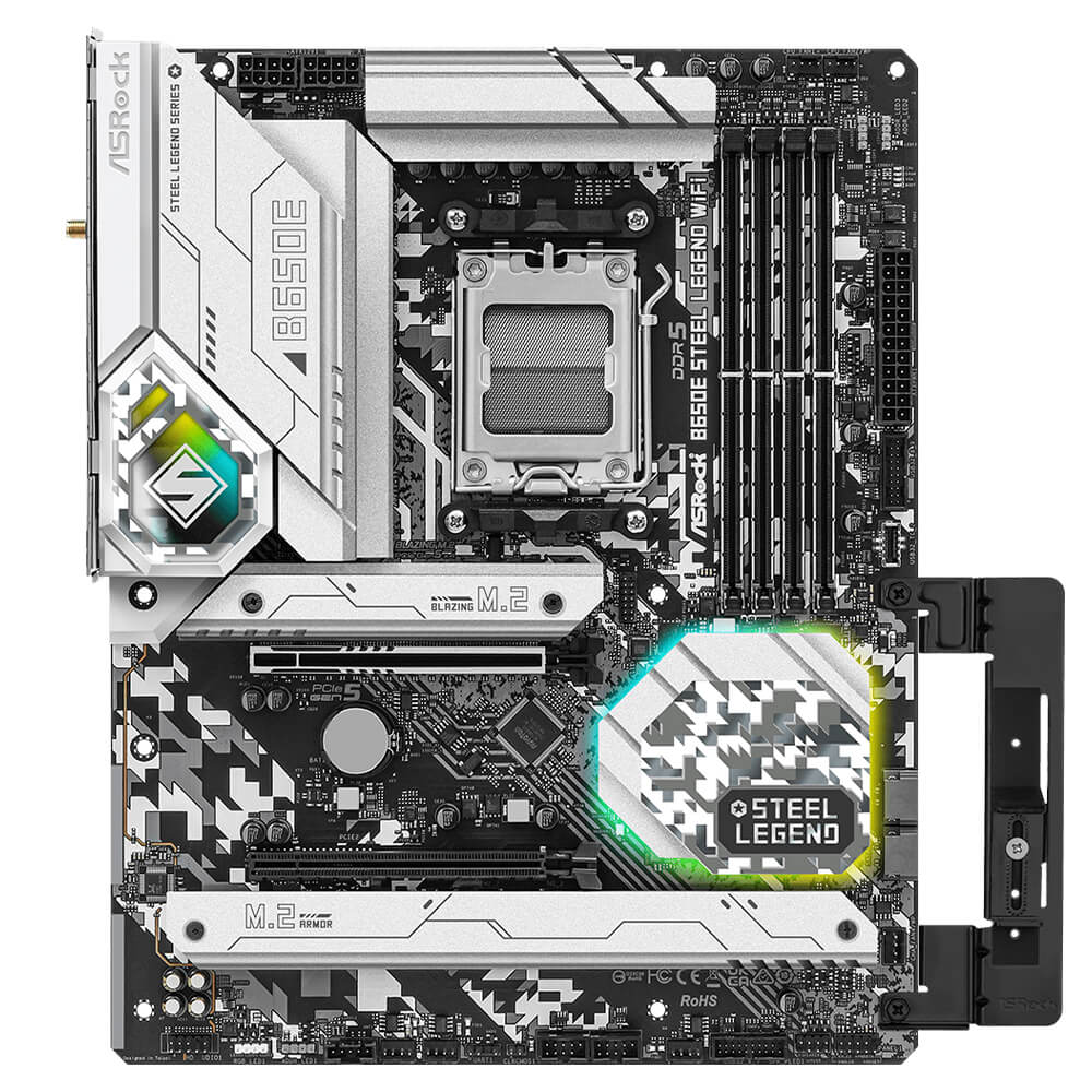 CPU: – 1 x PCIe 5.0 x16 Slot (PCIE1), supports x16 mode* – 1 x PCIe 3.0 x16 Slot (PCIE2), supports x4 mode* Chipset: – 1 x Vertical M.2 Socket (Key E), supports type 2230 WiFi/BT PCIe WiFi module- Supports AMD CrossFire™ – 15μ Gold Contact in VGA PCIe Slot (PCIE1) *Supports NVMe SSD as boot disks