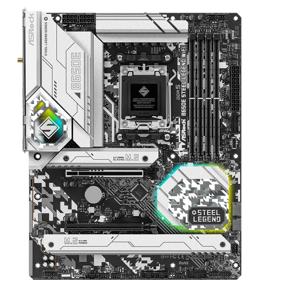 | Unique Feature | Superb Productivity – PCIe Gen5 (Graphics, M.2) – Dual Channel DDR5 Rock-Solid Durability – Server-Grade Low-Loss PCB – 16+2+1 Power Phase, 60A SPS – Flexible Integrated I/O Shield – Nichicon 12K Black Caps (100% Japan made high quality conductive polymer capacitors) Ultrafast Connectivity – 2.5G LAN, 802.11ax Wi-Fi 6EModule EZ Update – BIOS Flashback Button – ASRock Auto Driver Installer EZ Troubleshooter – ASRock Post Status Checker |