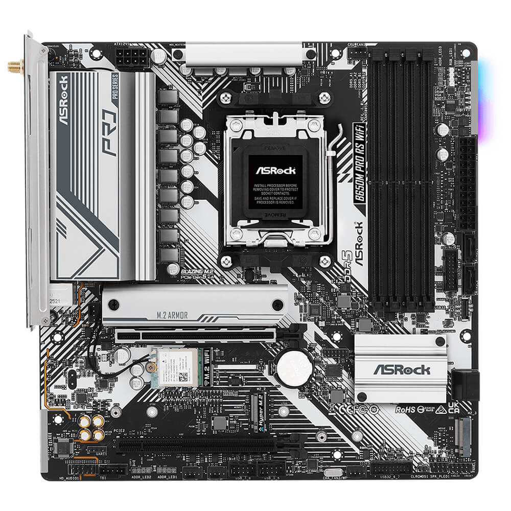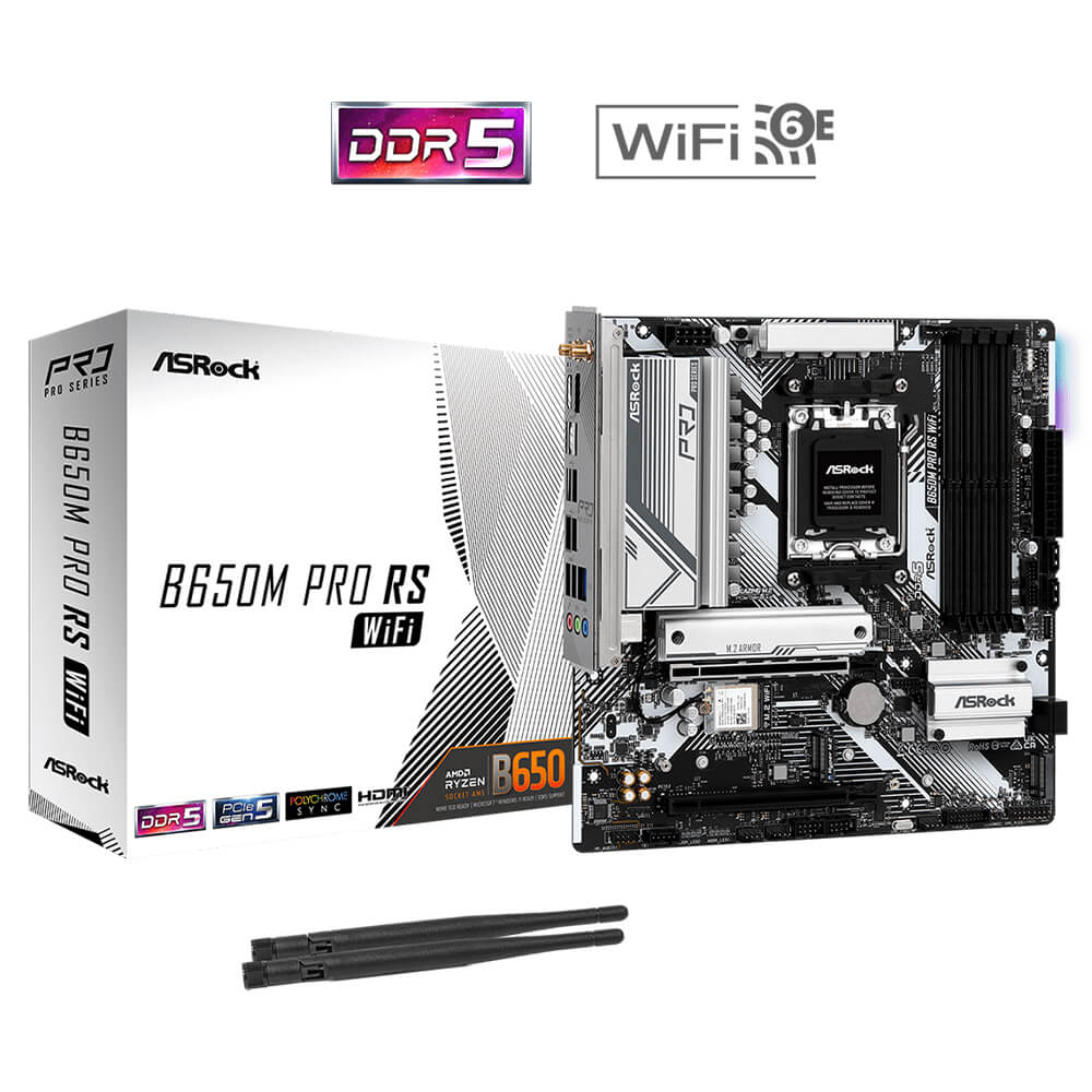 | Unique Feature | Superb Productivity – PCIe Gen5 (M.2) – Dual Channel DDR5 Rock-Solid Durability – 8+2+1 Power Phase, 50A Dr.MOS – Pre-Installed I/O Shield Ultrafast Connectivity – 2.5G LAN, 802.11ax Wi-Fi 6E Module EZ Update – BIOS Flashback Button – ASRock Auto Driver Installer EZ Troubleshooter – ASRock Post Status Checker |