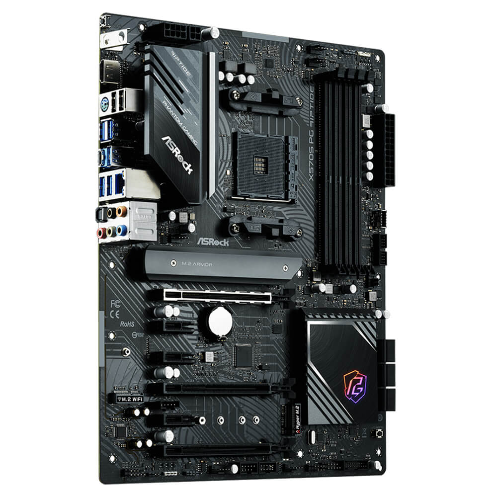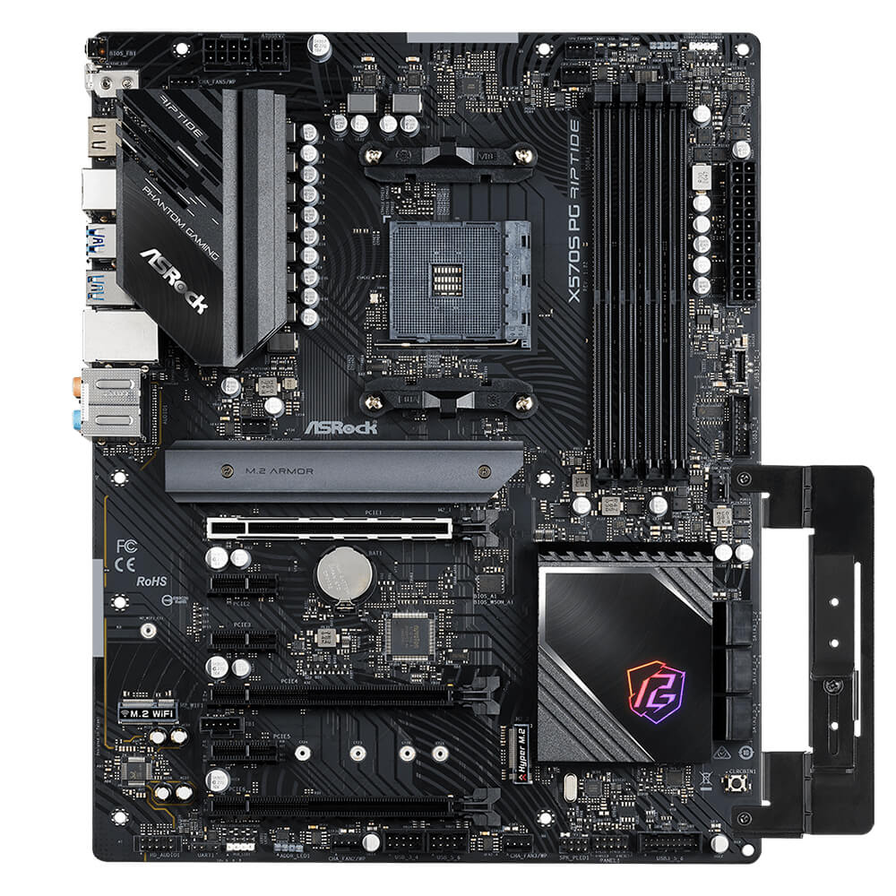 AMD Ryzen series CPUs (Vermeer, Matisse) – 1 x PCI Express 4.0 x16 Slot (x16 (PCIE1))* AMD Ryzen series CPUs (Cezanne, Renoir, Pinnacle Ridge) – 1 x PCI Express 3.0 x16 Slot (x16 (PCIE1)* AMD Ryzen series APUs (Picasso) – 1 x PCI Express 3.0 x16 Slot (x8 (PCIE1))* AMD X570 Chipset – 2 x PCI Express 4.0 x16 Slots (x4 (PCIE4) / x2 (PCIE6)) – 3 x PCI Express 4.0 x1 Slots – Supports AMD Quad CrossFireX™ and CrossFireX™ – 15μ Gold Contact in VGA PCIe Slot (PCIE1) – 1 x M.2 Socket (Key E), supports type 2230 WiFi/BT PCIe WiFi module *Supports NVMe SSD as boot disks