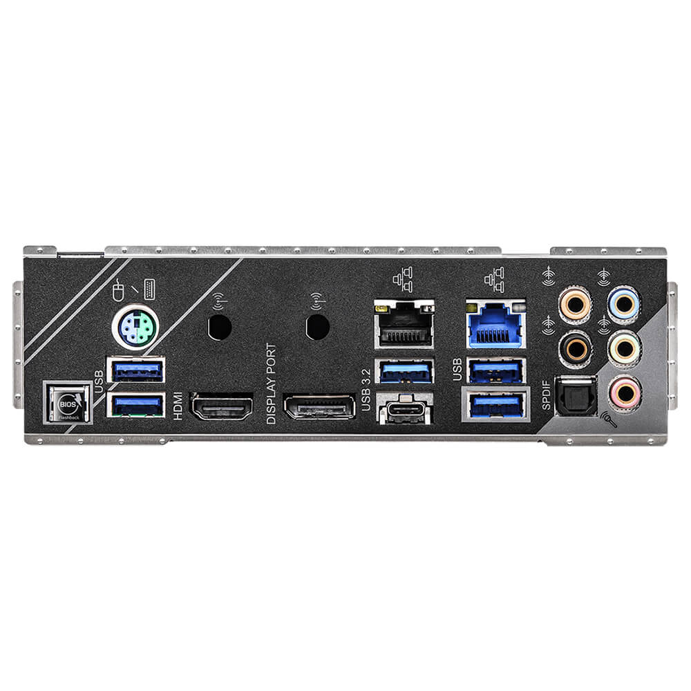 | Rear Panel I/O | – 2 x Antenna Ports – 1 x PS/2 Mouse/Keyboard Port – 1 x HDMI Port – 1 x DisplayPort 1.4 – 1 x Optical SPDIF Out Port – 1 x USB 3.2 Gen2 Type-A Port (10 Gb/s) (ReDriver) (Supports ESD Protection) – 1 x USB 3.2 Gen2 Type-C Port (10 Gb/s) (ReDriver) (Supports ESD Protection) – 4 x USB 3.2 Gen1 Ports (Supports ESD Protection)* – 2 x RJ-45 LAN Ports with LED (ACT/LINK LED and SPEED LED) – 1 x BIOS Flashback Button – HD Audio Jacks: Rear Speaker / Central / Bass / Line in / Front Speaker / Microphone (Gold Audio Jacks) *Ultra USB Power is supported on USB3_1_2 ports.