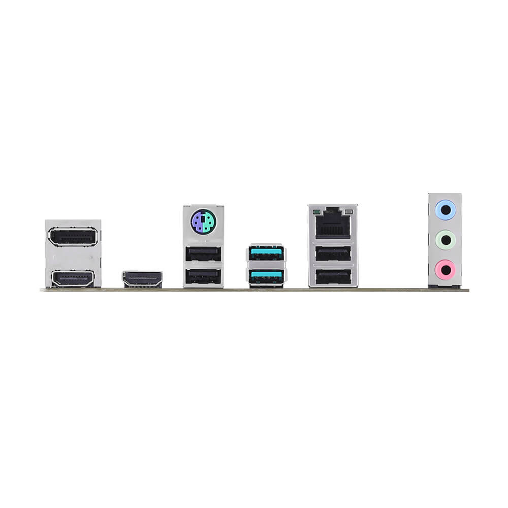 | Back Panel I/O Ports | 2 x USB 3.2 Gen 2 ports (2 x Type-A ) 4 x USB 2.0 ports (4 x Type-A) 1 x DisplayPort 2 x HDMI® ports 1 x Wi-Fi Module 1 x Realtek 2.5Gb Ethernet port 3 x Audio jacks 1 x PS/2 Keyboard/Mouse combo port |