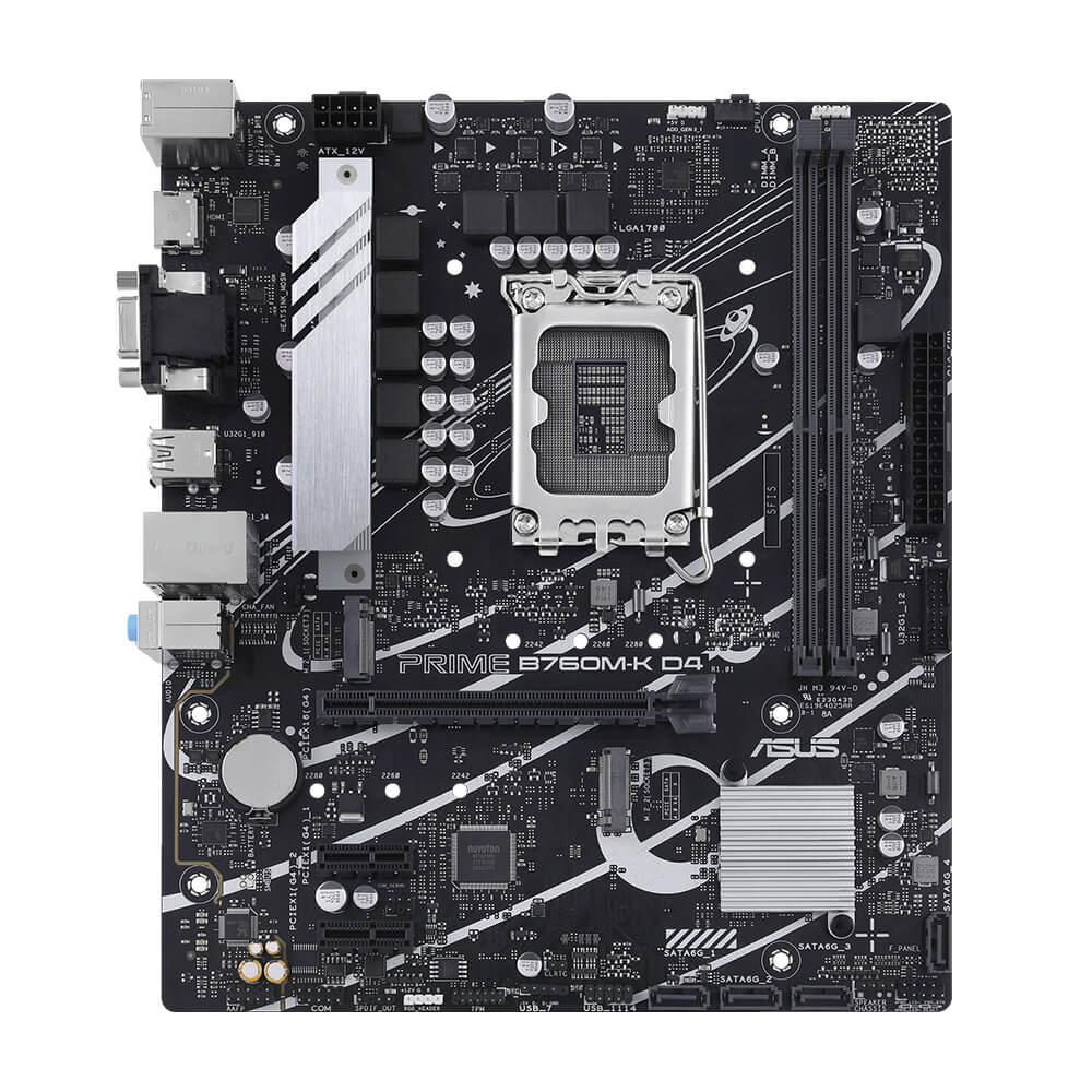 | Expansion Slots | Intel® 13th & 12th Gen Processors 1 x PCIe 4.0 x16 slot Intel® B760 Chipset 2 x PCIe 4.0 x1 slots Note: To ensure compatibility of the device installed, please refer to https://www.asus.com/support/ for the list of supported peripherals. |