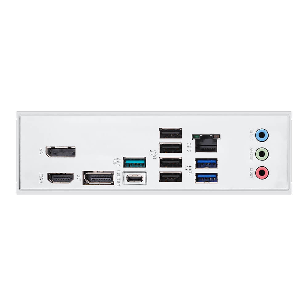 | Back Panel I/O Ports | 1 x USB 20Gbps port (1 x USB Type-C®) 1 x USB 10Gbps port (1 x Type-A) 2 x USB 5Gbps ports (2 x Type-A) 4 x USB 2.0 ports (4 x Type-A ) 2 x DisplayPort 1 x HDMI™ port 1 x Realtek 2.5Gb Ethernet port 3 x Audio jacks |