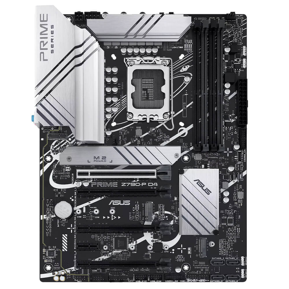 ASUS Prime Z790-P D4-CSM, an Intel Z790 LGA 1700 ATX motherboard with PCIe® 5.0, three M.2 slots, 14+1 DrMOS, DDR4, Realtek 2.5Gb Ethernet, HDMI®, DP, USB 3.2 Gen 2×2 Type-C®, front USB 3.2 Gen 2 Type-C®, Thunderbolt™ (USB4®) support, Arua Sync