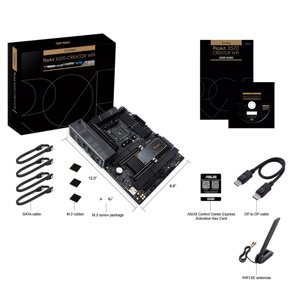 | Accessories | Cables 4 x SATA 6Gb/s cables 1 x DP to DP cable for Thunderbolt™ 4 Miscellaneous 1 x ASUS Wi-Fi moving antennas 2 x M.2 Rubber Package(s) 1 x M.2 SSD screw package(s) 1 x Q-connector Installation Media 1 x Support DVD Documentation 1 x ACC Express Activation Key Card 1 x User manual |