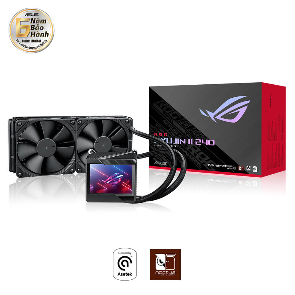 Bộ tản nhiệt nước CPU AIO ASUS ROG Ryujin II 240 với màn hình LCD 3.5″, quạt bơm tích hợp và 2 quạt tản nhiệt Noctua iPPC 2000 PWM 120mm