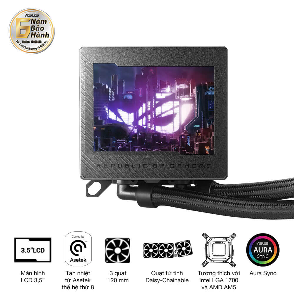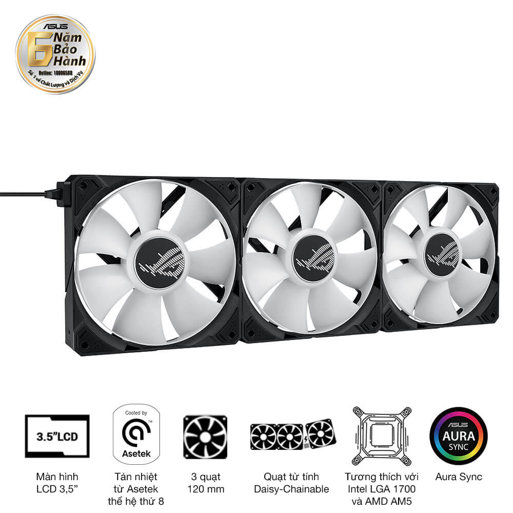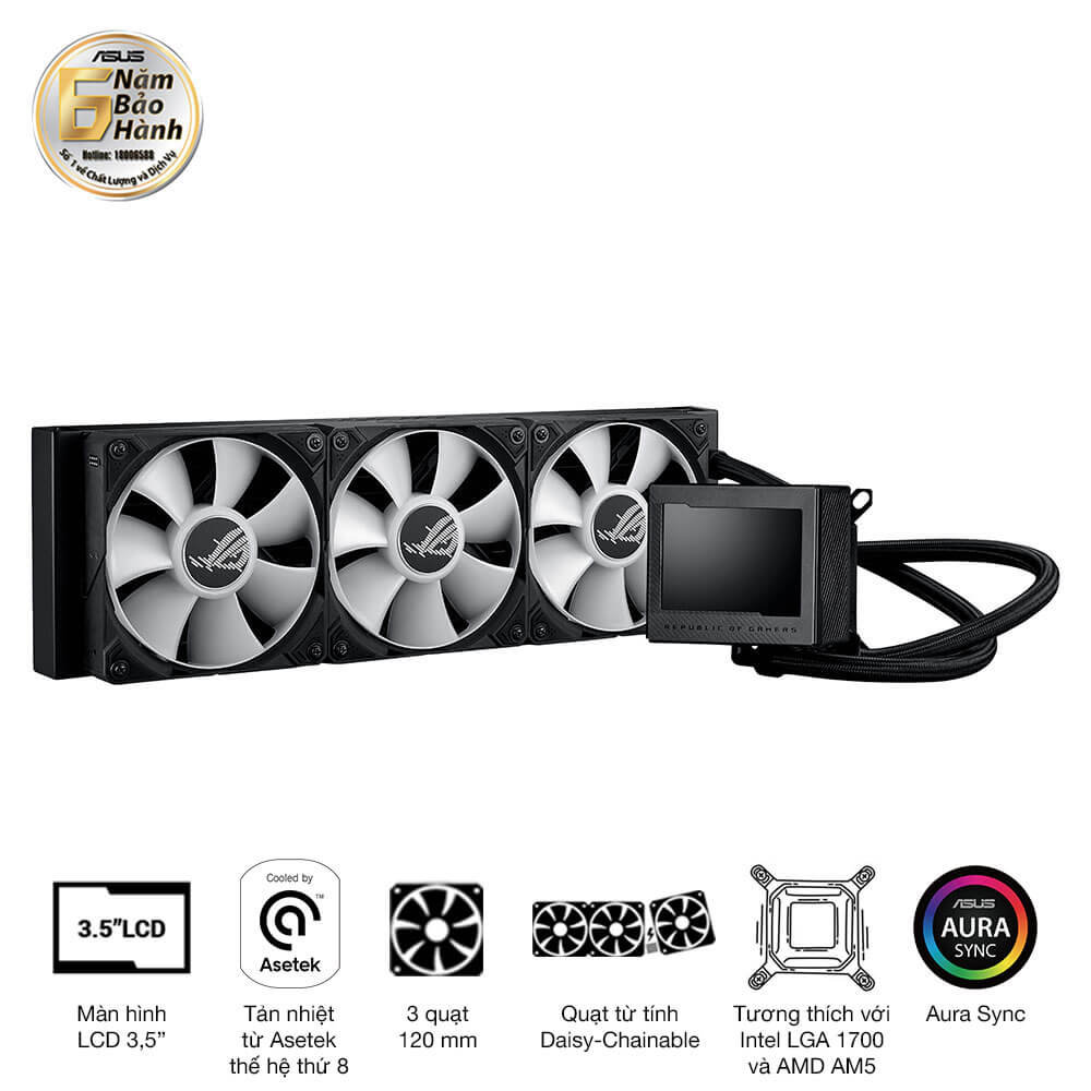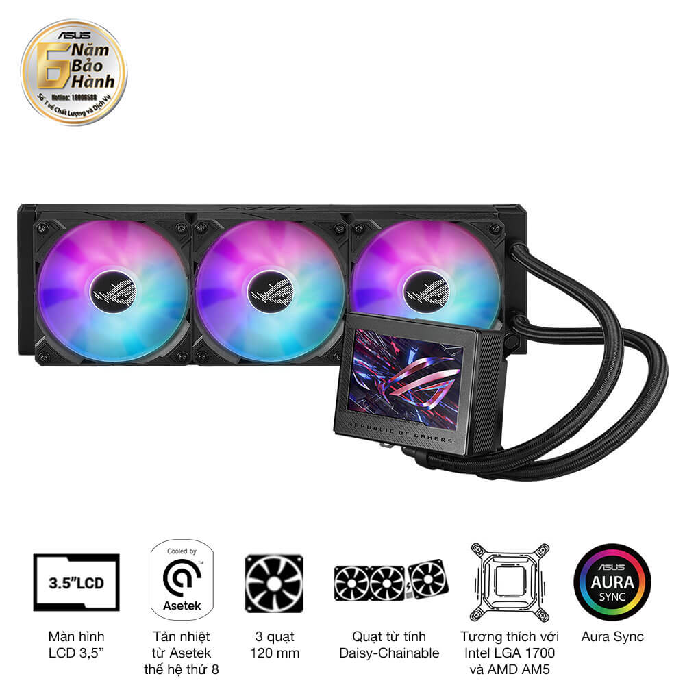 Tản nhiệt nước CPU kết hợp all-in-one ROG Ryujin III 360 ARGB với màn hình LCD 3,5 inch, giải pháp bơm Asetek thế hệ 8, quạt bơm tích hợp và 3 quạt tản nhiệt ROG 120mm ARGB