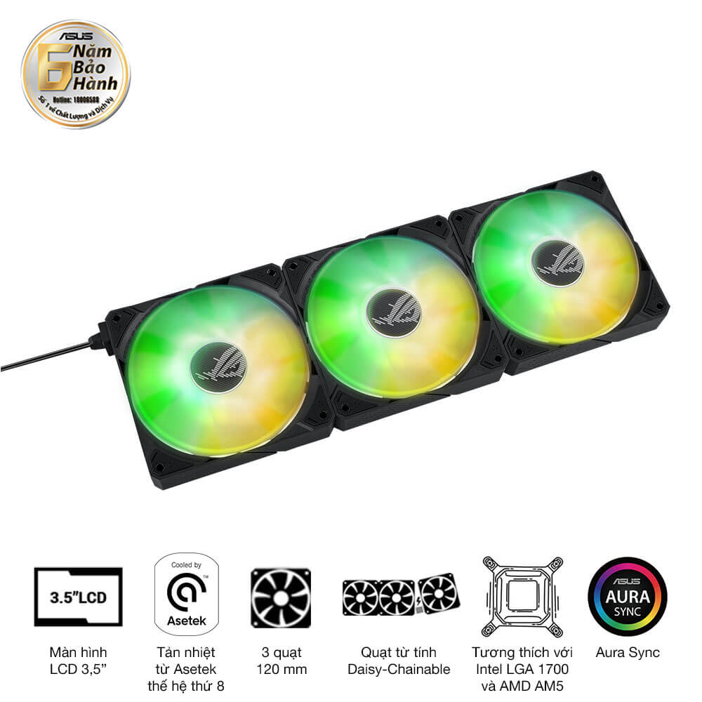 • Các quạt tản nhiệt ROG ARGB cao cấp thế hệ thứ 2 với đèn LED cho phép người dùng tùy chỉnh hiệu ứng ánh sáng