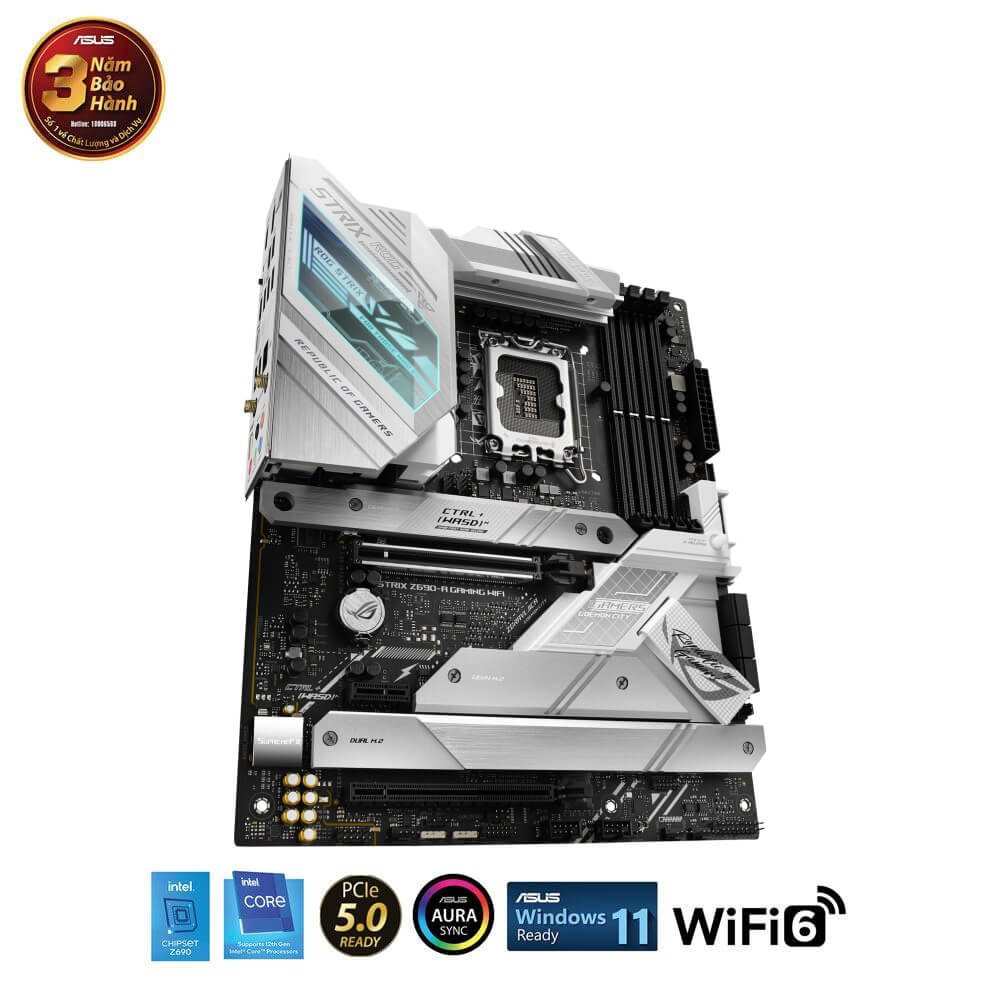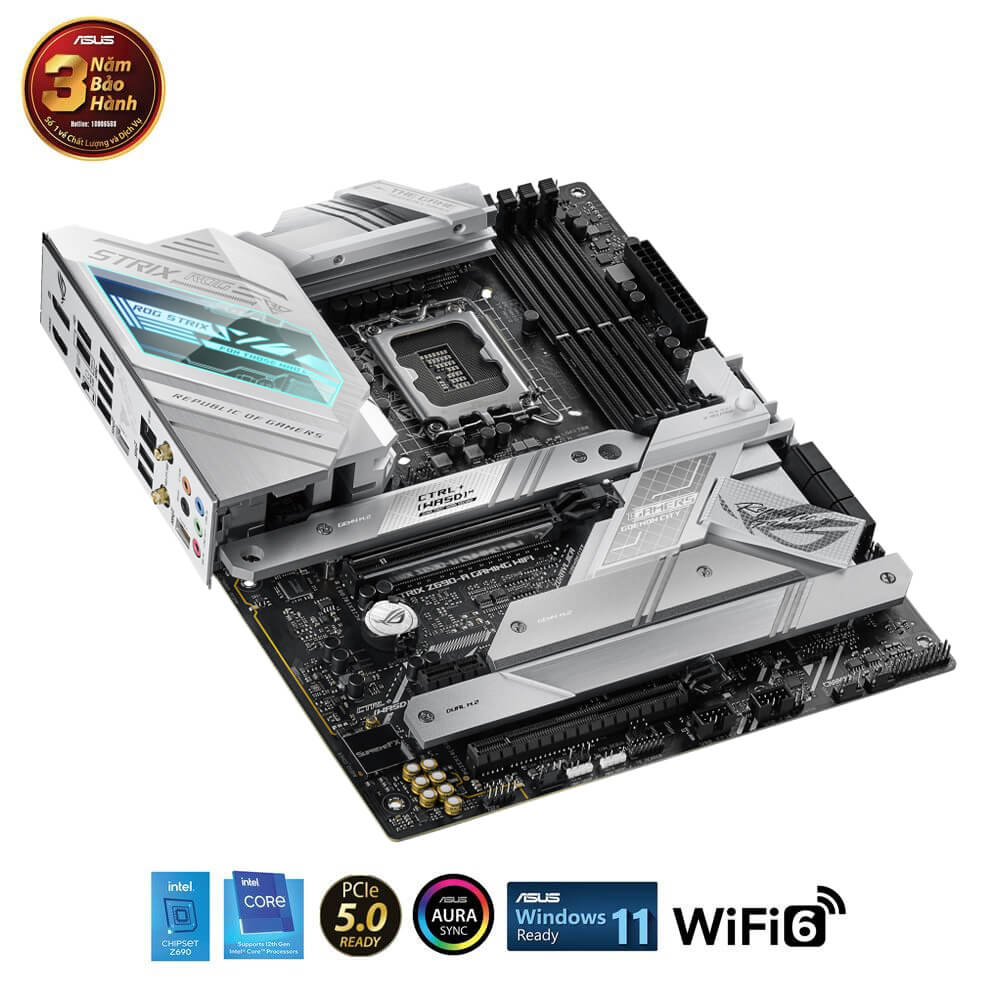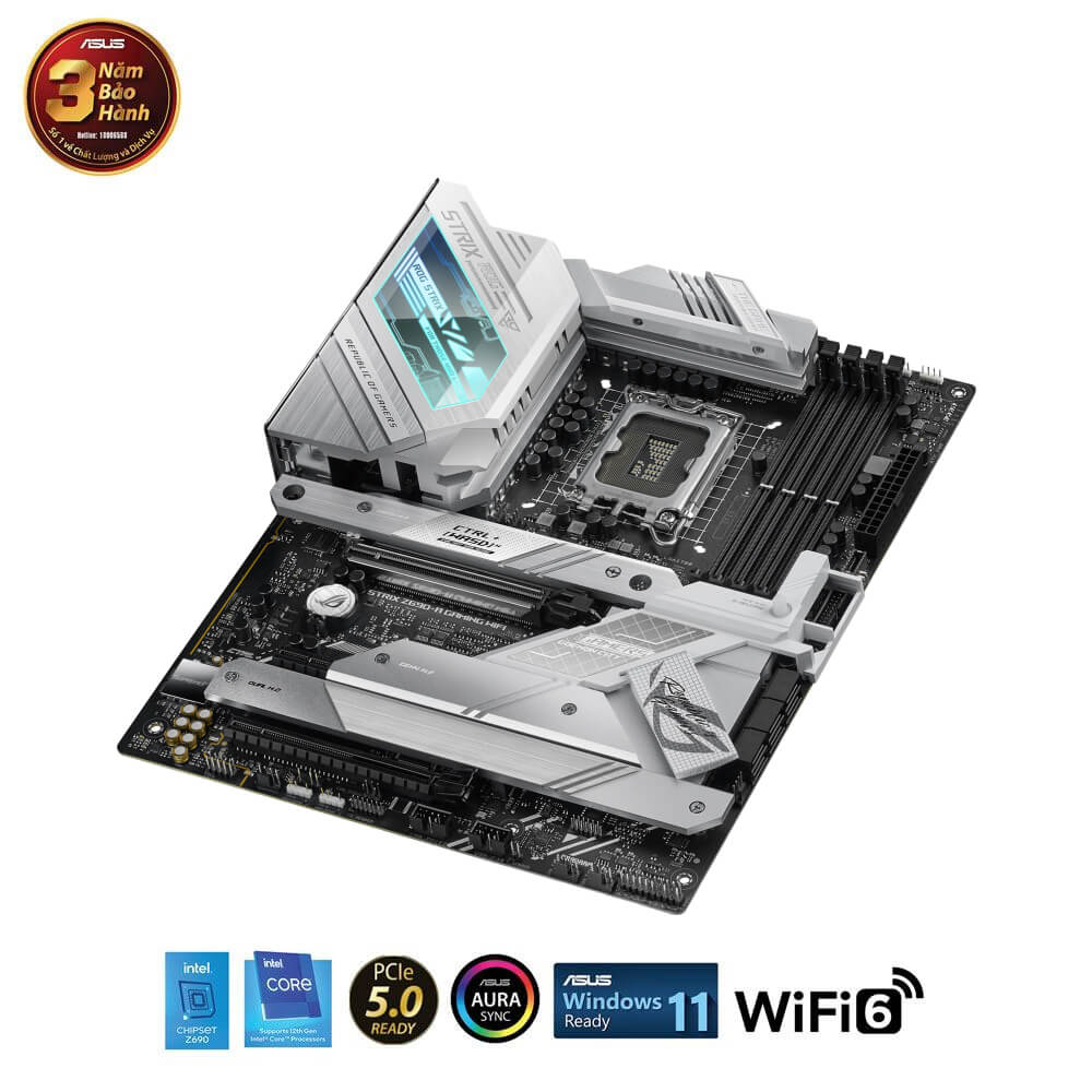 Intel® Z690 LGA 1700 ATX motherboard with PCIe® 5.0, 16+1 DrMos, DDR5, Two-Way AI Noise Cancelation, AI Overclocking, AI Cooling, AI Networking, WiFi 6E, Intel 2.5 Gb Ethernet, four M.2 slots with heatsinks PCIe 4.0 NVMe® SSD support, M.2 backplate, USB 3.2 Gen 2×2 Type-C®, SATA and AURA Sync RGB lighting
