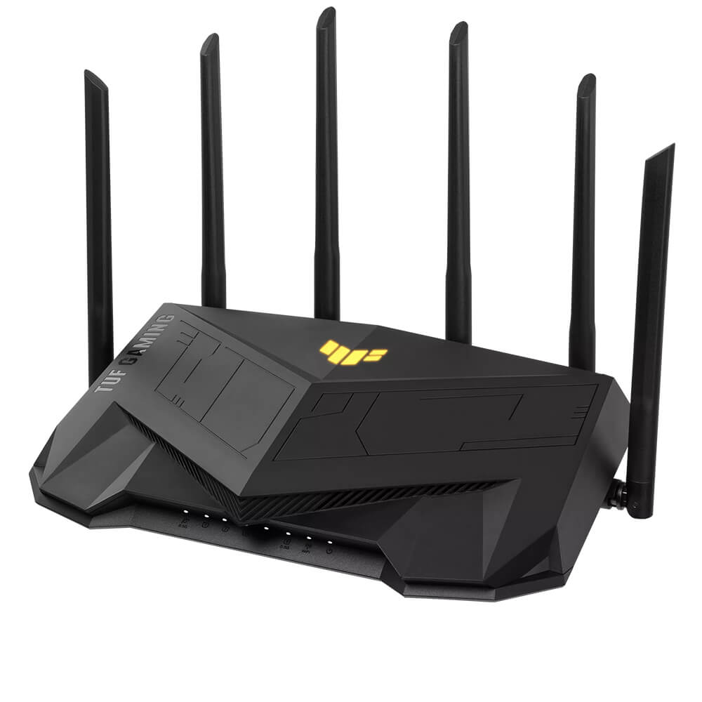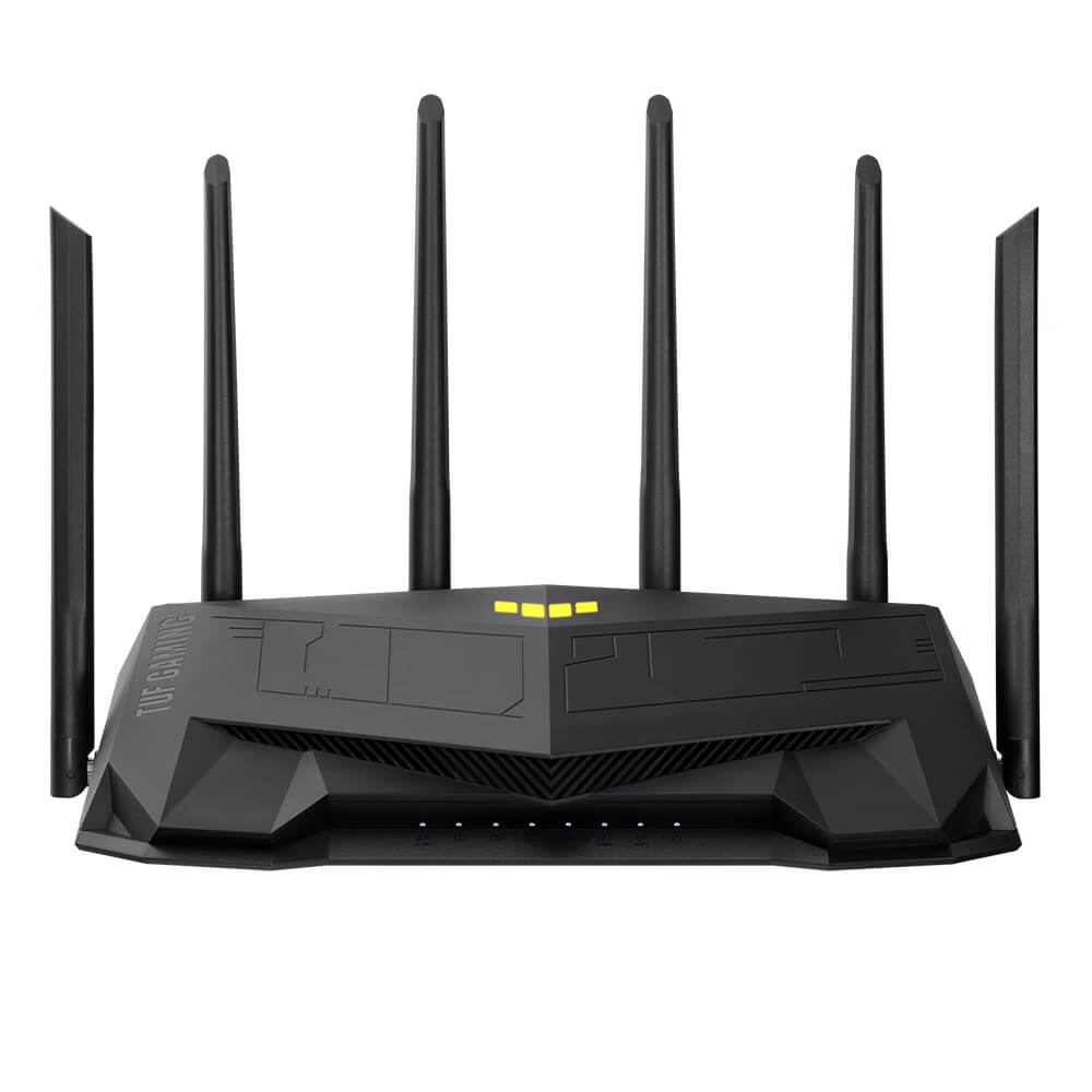 Router ASUS TUF Gaming AX6000 Wi-Fi 6 hai băng tần với cổng chơi game chuyên dụng, chuyển tiếp cổng 3 bước, AiMesh cho WiFi Mesh, Bảo mật mạng AiProtection Pro và đèn AURA RGB