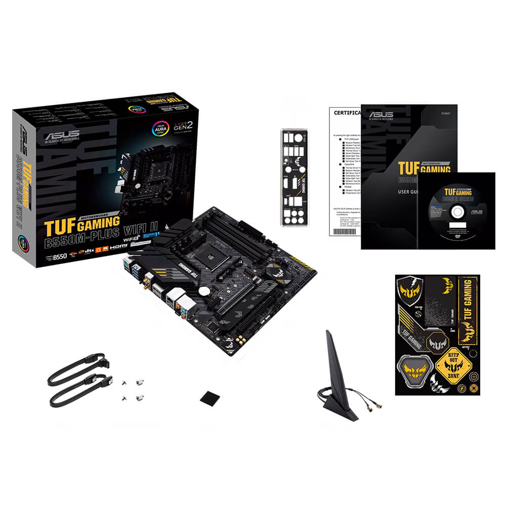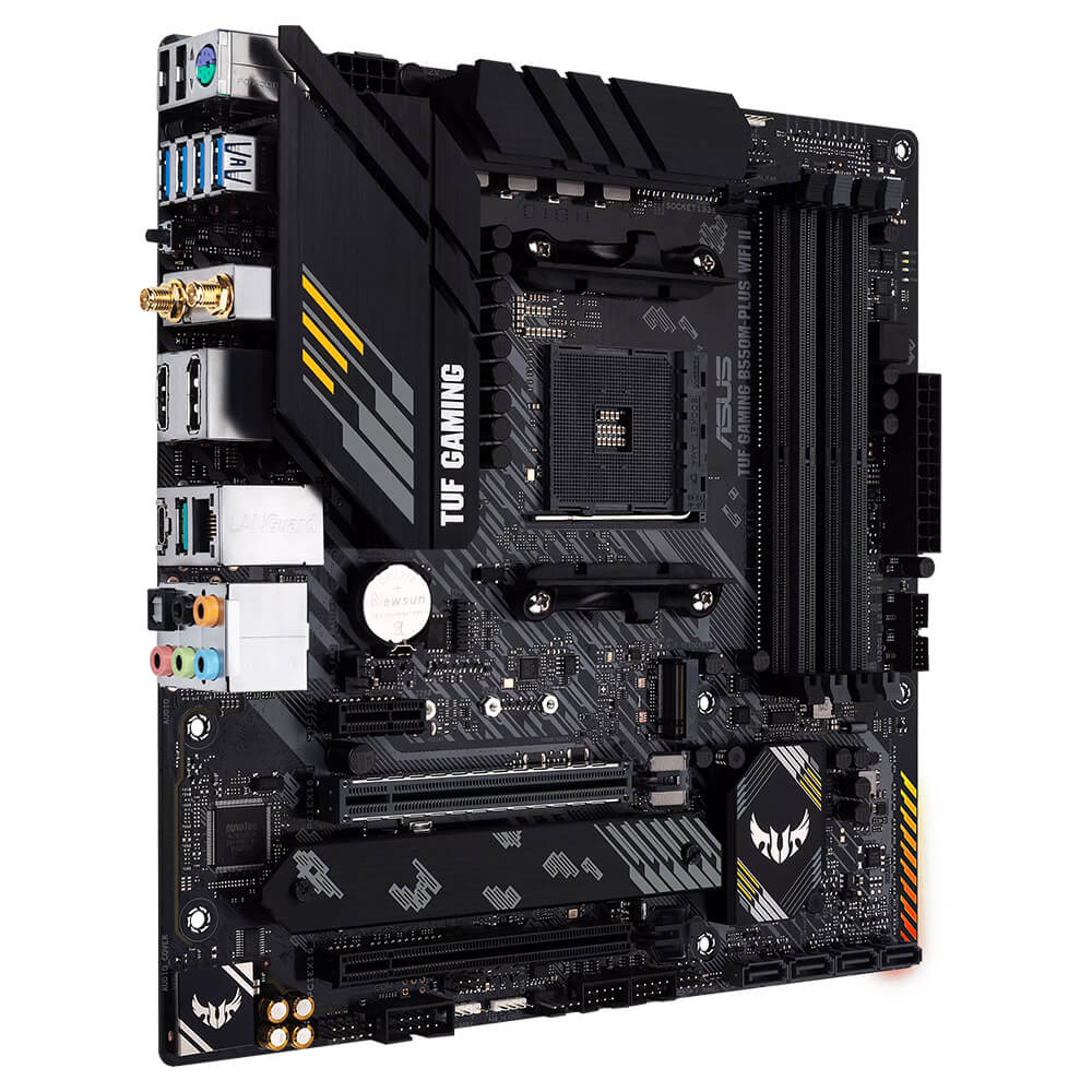 AMD B550 (Ryzen AM4) micro ATX gaming motherboard with PCIe 4.0, dual M.2, 10 DrMOS power stages, Wi-Fi 6, 2.5 Gb Ethernet, HDMI, DisplayPort, SATA 6 Gbps, USB 3.2 Gen 2 Type-A and Type-C®, BIOS FlashBack™, and Aura Sync RGB lighting support