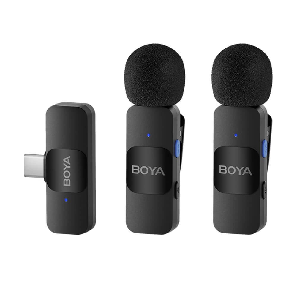 | Packing List | BY-V2-TX Transmitter ×2 BY-V20-RX Receiver ×1 USB-C Charging Cable ×2 Foam Windscreen ×2 |