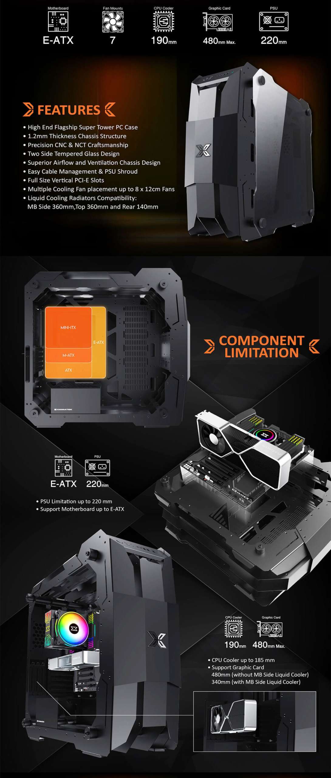 | Chiều dài tối đa GPU | 480mm (Without MB Side Liquid Cooler) 340mm (With MB Side Liquid Cooler) |