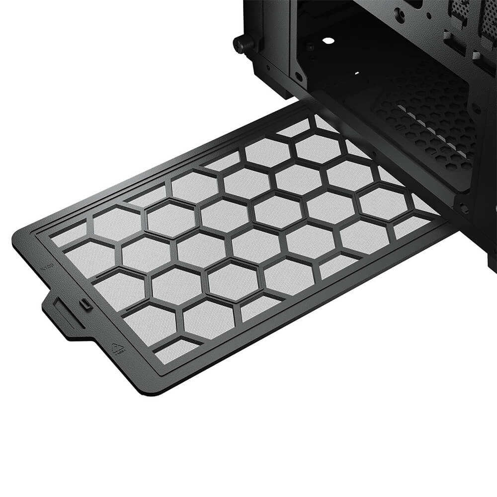 Tấm lọc bụi được lắp ráp trên case Cougar DUOFACE RGB một cách thông mình. Bạn có thể dễ dàng trượt nhanh để sử dụng tấm lọc bụi mà không cần phải tháo bảng điều khiển phía trước.