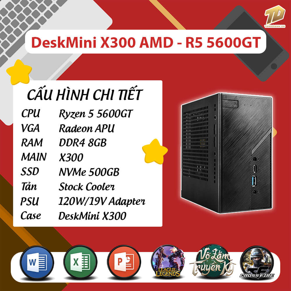 | DeskMini | DeskMini X300 Series – (AM4 Socket CPU, 2 Slot RAM Up to 3200Mhz, Dual M.2 NVMe, USB 3.2 Gen1 TypeC) |