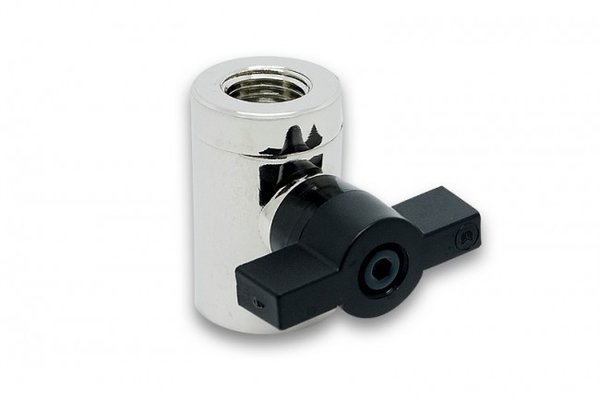 EK-AF Ball Valve is adapter fitting with 2 x female G1/4″ BSP threads, useful for making a drain point in your system. It features a valve handle that can seal off the flow of the liquid inside the loop.