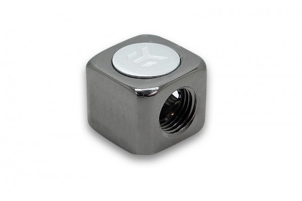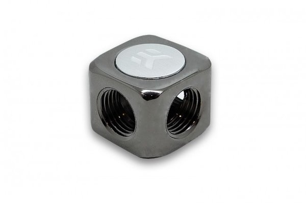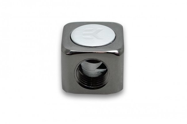 EK-AF T-Splitter is a simple cube-shaped adapter fitting with 3 x G1/4″ BSP threads, useful for splitting or combining the liquid flow in your loop.