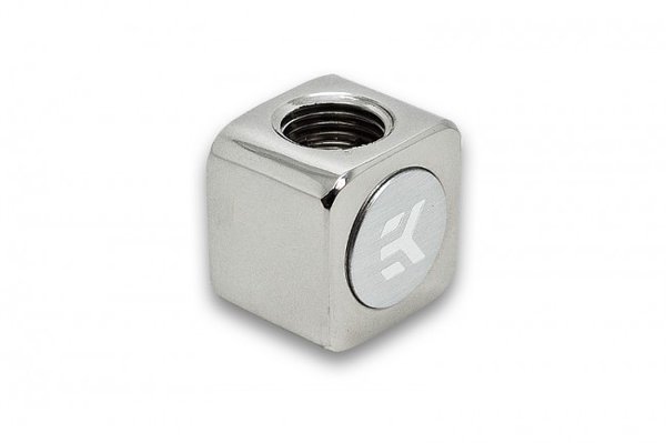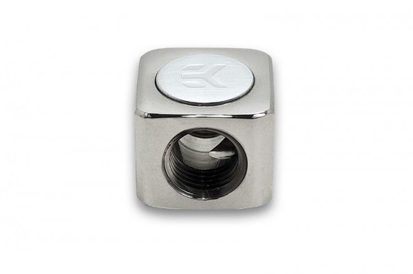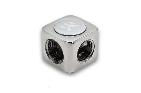 EK-AF T-Splitter is a simple cube-shaped adapter fitting with 3 x G1/4″ BSP threads, useful for splitting or combining the liquid flow in your loop.