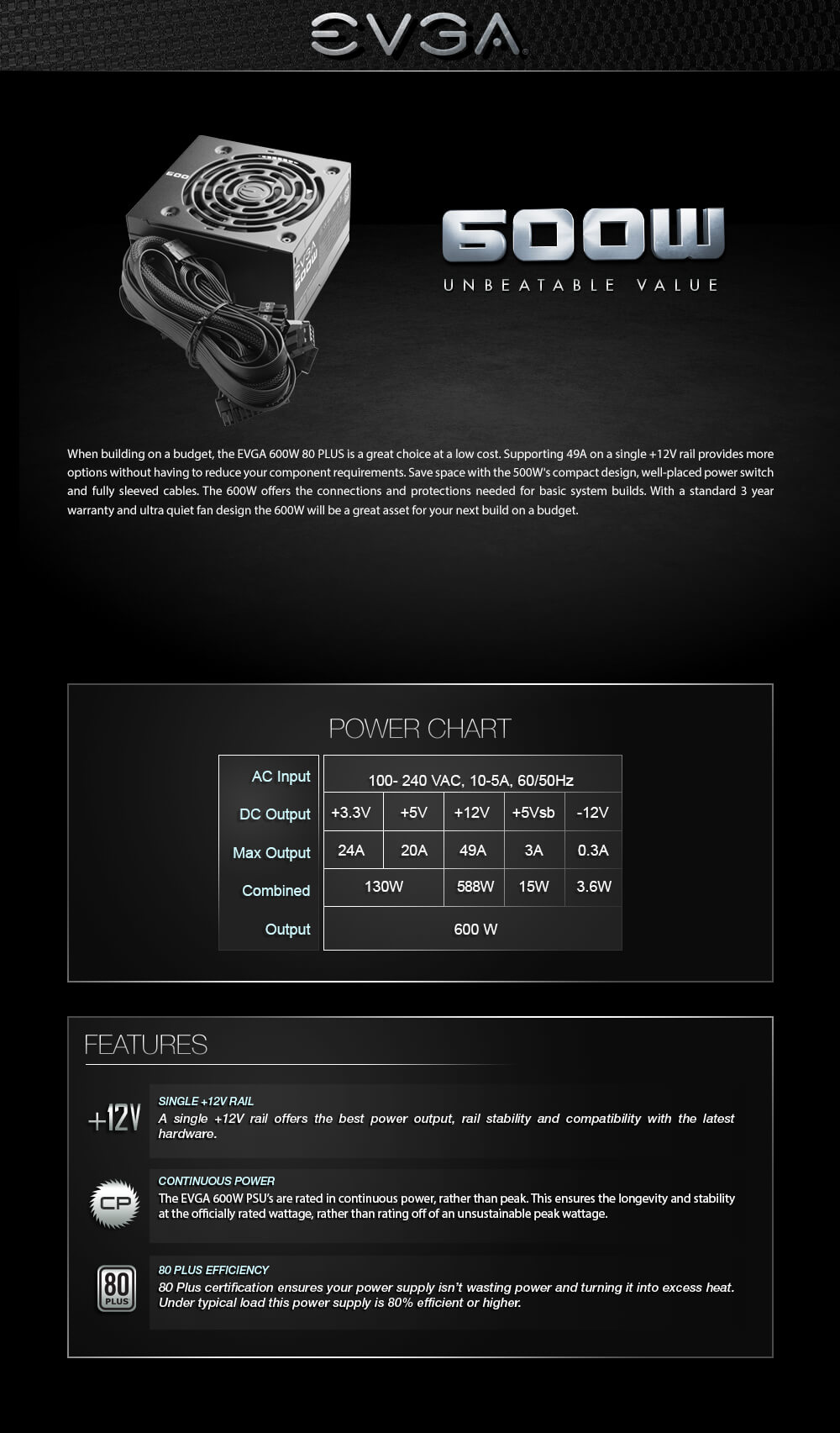 | AC Input | 100 – 240 VAC, 10-5A, 50 – 60 Hz | ||||