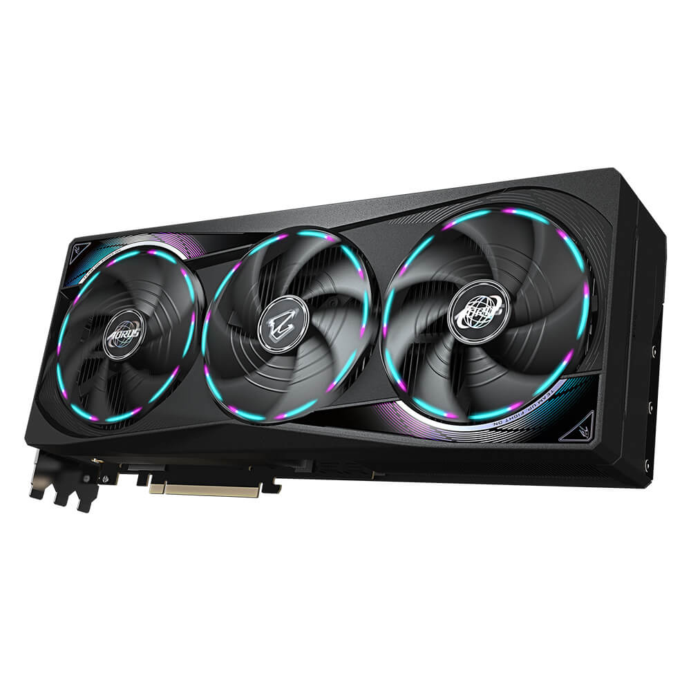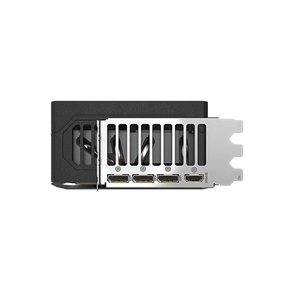 - Tích hợp màn hình LCD Edge View trên cạnh card cho phép hiển thị thông tin hệ thống hoặc hình ảnh tùy chỉnh, cùng với hiệu ứng ánh sáng RGB Halo xung quanh quạt, tạo nên vẻ ngoài độc đáo và cá nhân hóa cho hệ thống.
