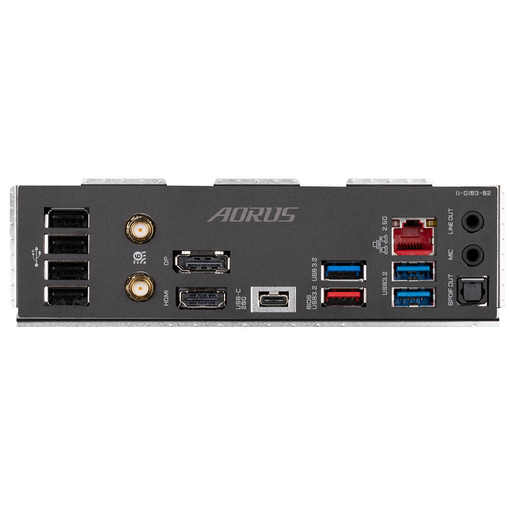 | Back Panel Connectors | 1 x USB Type-C® port, with USB 3.2 Gen 2×2 support 1 x USB 3.2 Gen 2 Type-A port (red) 3 x USB 3.2 Gen 1 ports 4 x USB 2.0/1.1 ports 2 x SMA antenna connectors (2T2R) 1 x HDMI port 1 x DisplayPort 1 x RJ-45 port 1 x optical S/PDIF Out connector 2 x audio jacks |