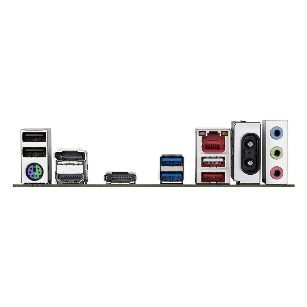 | Back Panel Connectors | 1 x PS/2 keyboard/mouse port 1 x HDMI port (Note) 2 x DisplayPorts (Note) 1 x USB 3.2 Gen 2 Type-A port (red) 2 x USB 3.2 Gen 1 ports 3 x USB 2.0/1.1 ports 1 x RJ-45 port 3 x audio jacks(Note) Actual support may vary by CPU. |