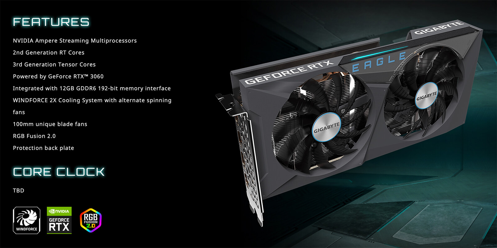 Gigabyte GeForce RTX™ 3060 EAGLE 12G – 12GB GDDR6 V2