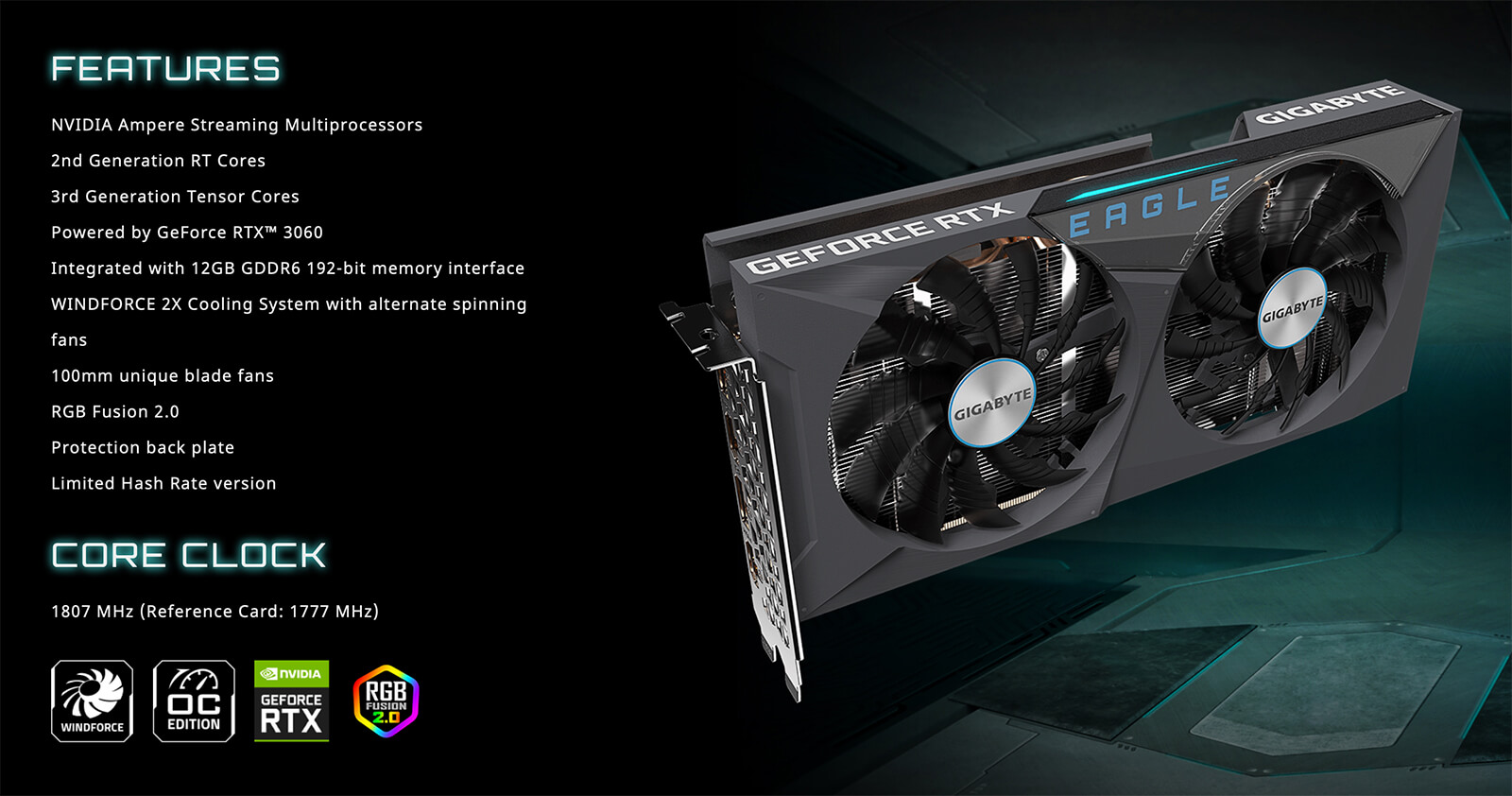 Gigabyte GeForce RTX™ 3060 EAGLE OC 12G – 12GB GDDR6 V2