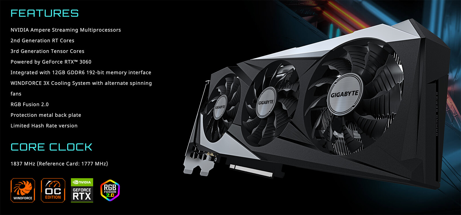 Gigabyte GeForce RTX™ 3060 GAMING OC 12G – 12GB GDDR6 V2