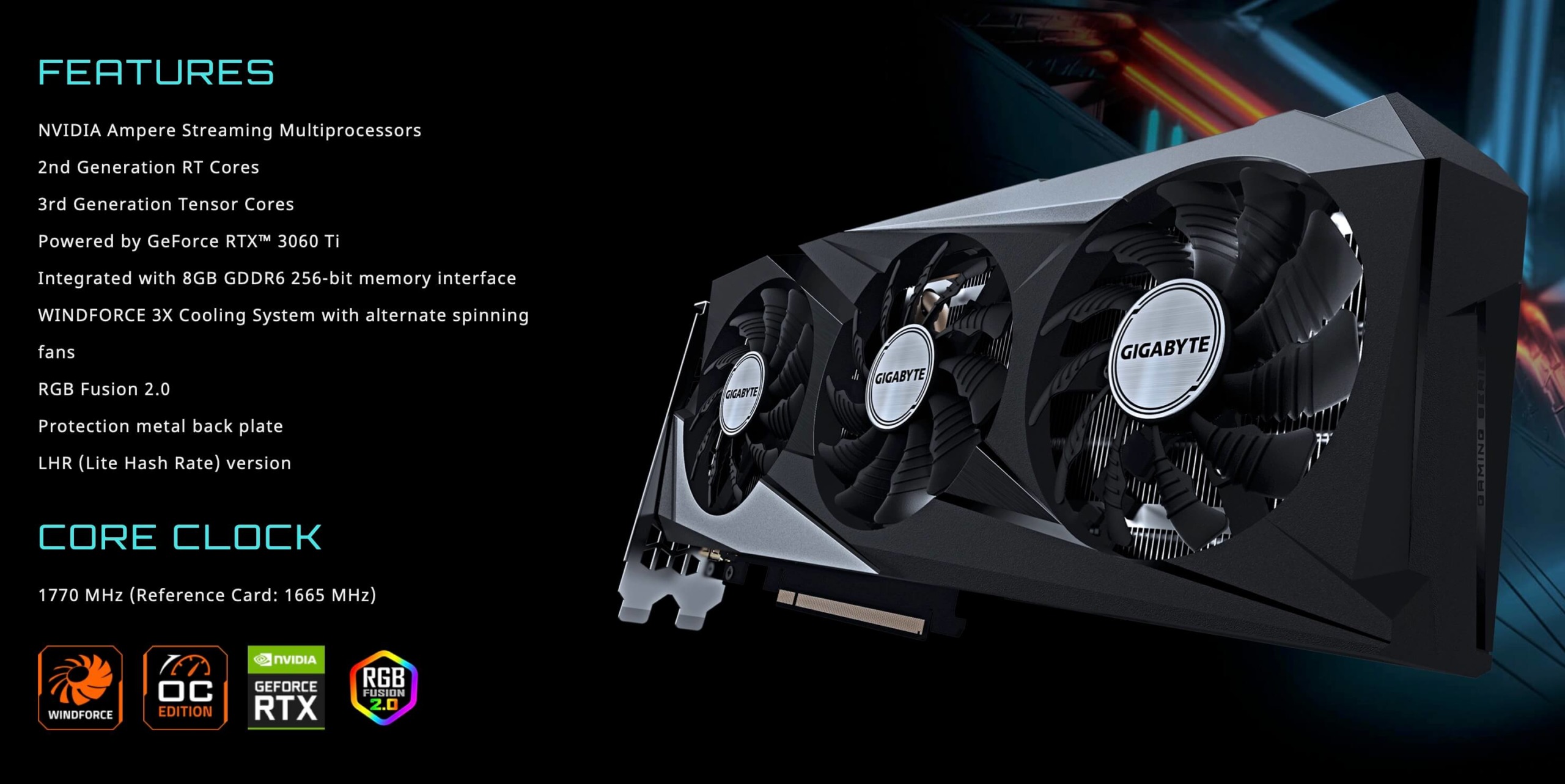 Gigabyte GeForce RTX™ 3060Ti Gaming OC Pro 8G – 8GB GDDR6 V2