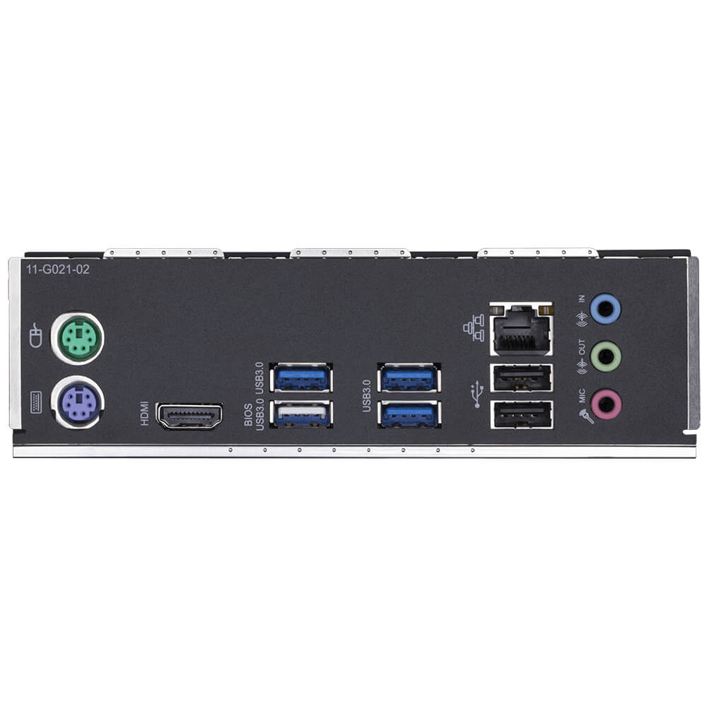 1 x PS/2 mouse port 1 x HDMI port 4 x USB 3.2 Gen 1 ports 2 x USB 2.0/1.1 ports 1 x RJ-45 port 3 x audio jacks |
