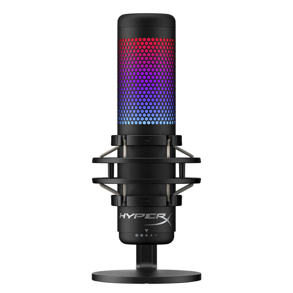 HyperX QuadCast™ là micrô độc lập đầy đủ chức năng lý tưởng cho streamer hoặc podcaster đang khát khao tìm kiếm một chiếc micrô tụ có âm thanh chất lượng cao. QuadCast đi kèm với đế chống sốc chống rung riêng để giúp giảm tiếng ồn ào trong cuộc sống hàng ngày và bộ lọc tạp âm tích hợp sẵn để giảm bớt những tiếng nổ khó chịu. Biết ngay trạng thái micrô của bạn như thế nào nhờ đèn báo LED và chỉ cần chạm để tắt tiếng để tránh những sự cố phát thanh khó xử. Với bốn loại cực có thể lựa chọn được, chiếc mic này luôn sẵn sàng cho bất kỳ tình huống thu âm nào và được trang bị núm xoay điều chỉnh khuếch đại nằm ở vị trí tiện lợi để nhanh chóng điều chỉnh độ nhạy đầu vào của mic. Bộ chuyển đổi giá đi kèm vừa với kích cỡ dây 3/8” và 5/8” và tương thích với hầu hết các loại chân đế. Mẫu QuadCast S mang lại các hiệu ứng ánh sáng RGB động có thể tùy biến qua phần mềm HyperX NGENUITY.