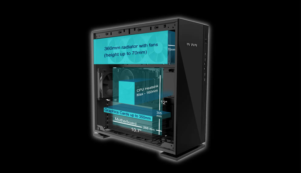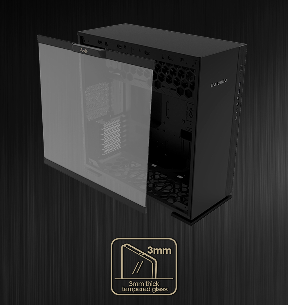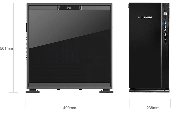 | * InWin products comply with RoHS regulation. * Specifications may vary based on different regions. * Pre-installed glass panel. Extra fee for closed panel. |