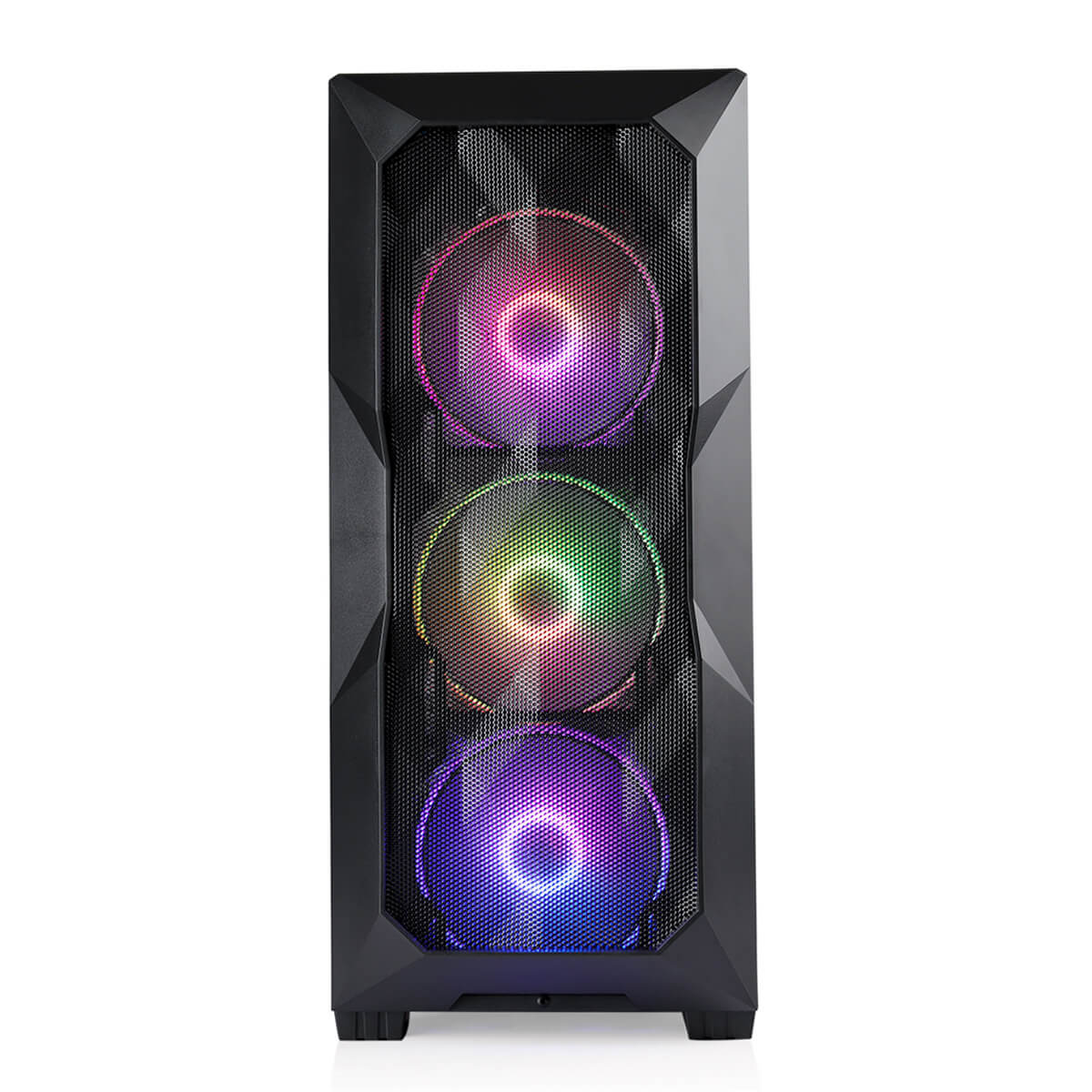 - Về phần thiết kế thì INFINITY AIR phía trước được tạo ra những hình ảnh 3D tạo cho người nhìn vào như 1 lớp chắn kim cương có thể nhìn xuyên thấu cùng với những cánh quạt ARGB tạo thêm phần màu sắc cho case.