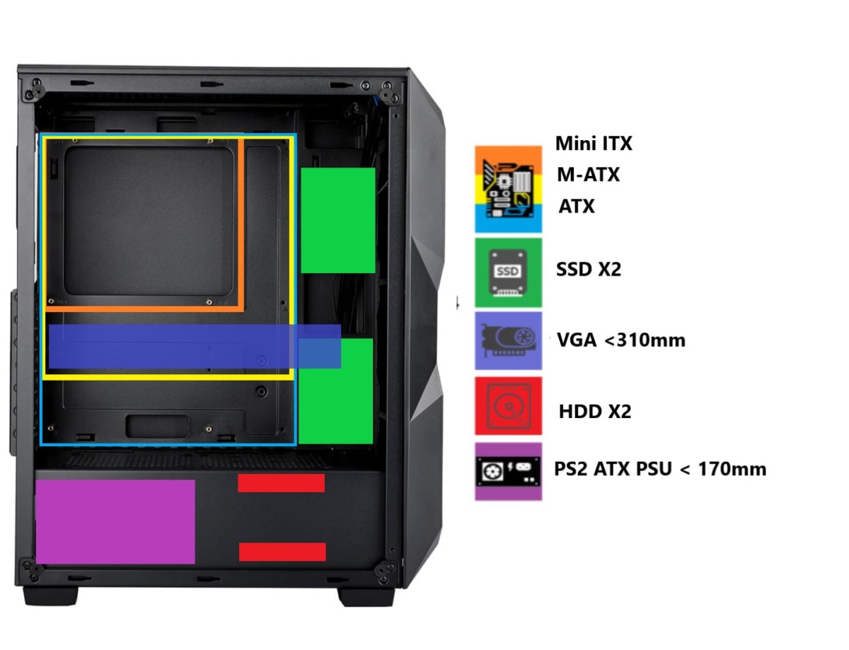 - Chiều cao tối thiểu khi lắp tản nhiệt là dưới 160mm và chiều dài VGA tối đa 310mm