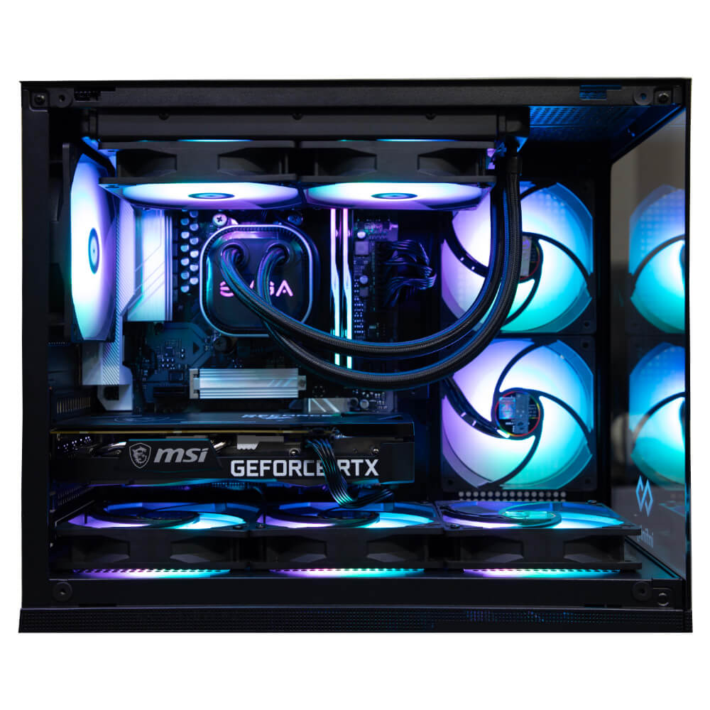 - Hỗ trợ tản nước 240mm ở cả mặt hông và mặt trên và hỗ trợ tối đa lên tới 9 Fan 120mm tạo nhiều điều kiện trang trí cho góc Showcase hoành tráng.