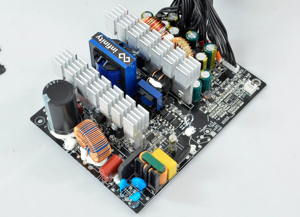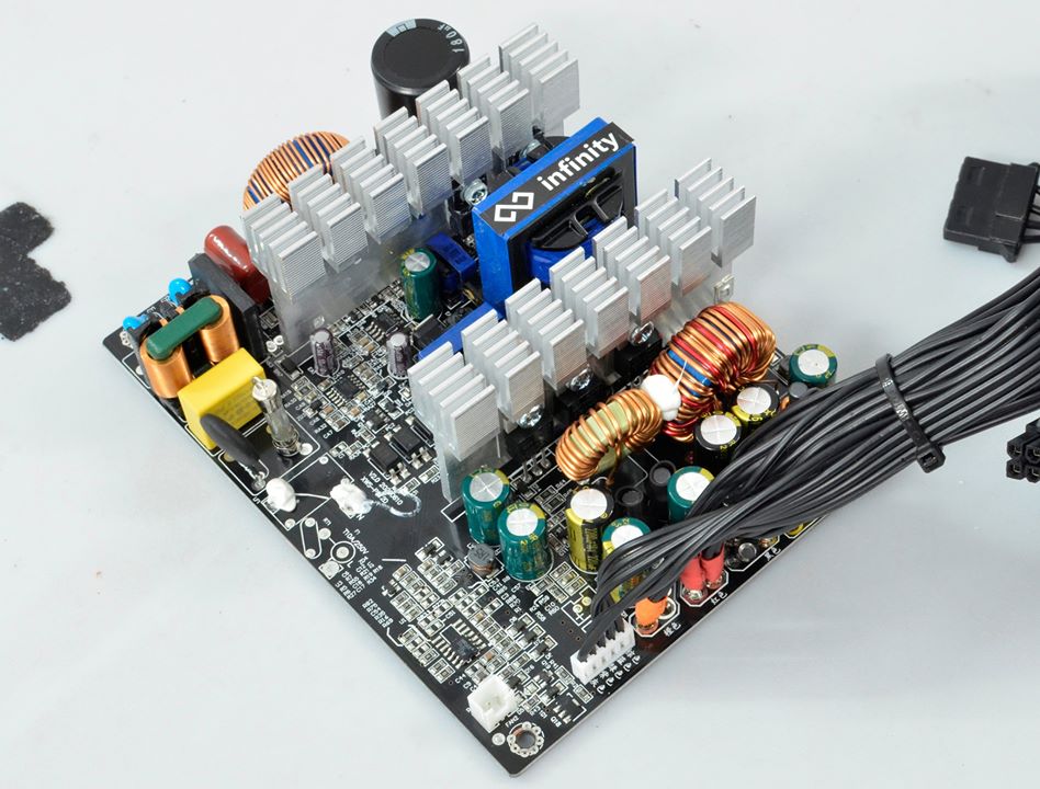 Infinity ECO 450W có platform hoàn toàn mới không liên quan gì tới người anh ECO 600W. Điểm đặc biệt của Platform này là sử dụng PCB sợi thủy tinh 2 lớp FR4 thường được sử dụng ở các PSU có công suất cao , đây là điều chưa có NSX nào sử dụng cho phân khúc phổ thông mà họ chỉ sử dụng loại PCB bột giấy 1 lớp CEM-1 do chi phí sản xuất PCBA sẽ thấp hơn nhiều.