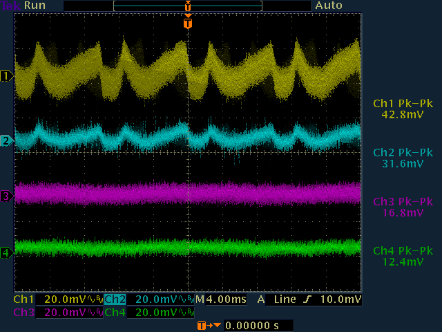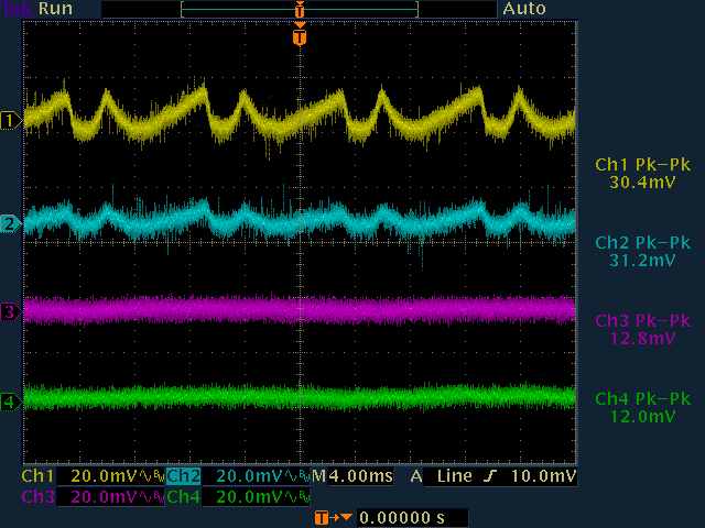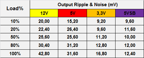 Ripple& noise của ECO 450W đạt mức khá khi đường 12V tối đa 43mV, các đường điện còn lại đều dưới 30mV