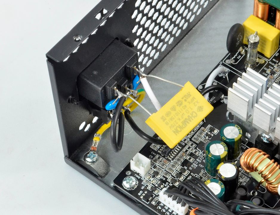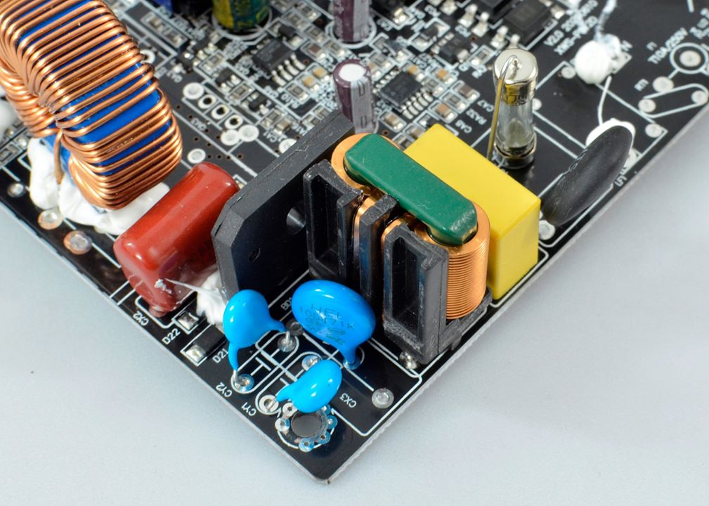 Infinity ECO 450W được trang bị đầy đủ các thành phần chính của tầng EMI như: Các tụ X và Y dập tia lửa điện ở jack cắm AC, mạch lọc EMI tuy chỉ trang bị 1 lớp nhưng không hề thiếu vắng thành phần chống sét MOV