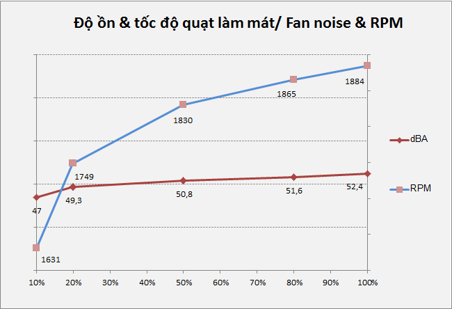 7- Nhiệt độ làm việc và tốc độ/ độ ồn quạt làm mát: