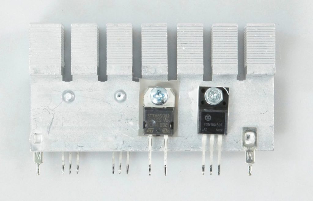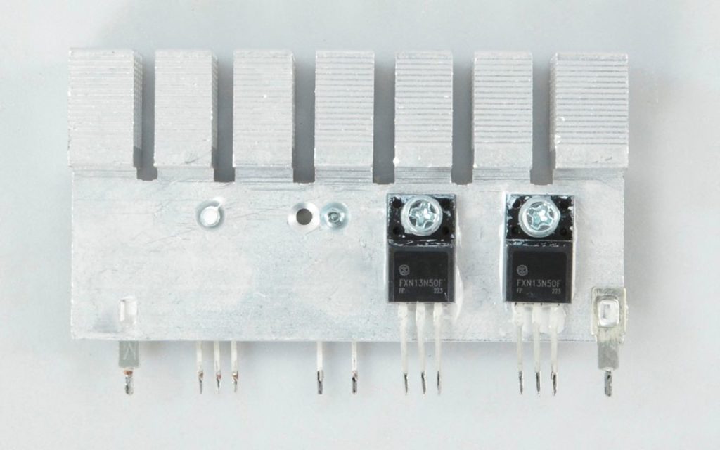 Tầng Active PFC sử dụng 1 Mosfet FXN15N50F(15A) đi kèm với 1 boost diode 8A , Tầng PWM sử dụng 1 cặp FXN13N50F(13A) cả 2 tầng PWM và PFC đều hoạt động dưới sự điều khiển của IC dao động Champion CM6805BG rất quen thuộc