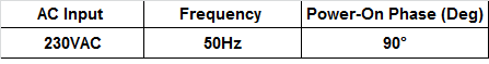 Để kiểm tra thông số này AC source sẽ được setup với thông số như sau: Góc mở phase sẽ là 90 độ là thời điểm dòng điện xoay chiều đạt giá trị tối đa
