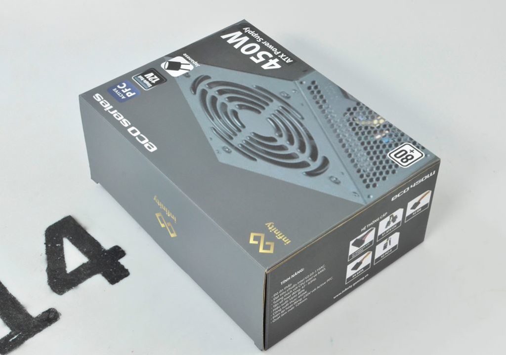 Infinity vừa tiếp tục cho ra mắt dòng sản phẩm nguồn mới mang tên ECO 450W. Nhằm thay thế dòng sản phẩm Andyson E5+ trước đây, được định vị ở phân khúc phổ thông hay thường được gọi vui là phân khúc “nguồn cỏ” với các tính năng và chất lượng vượt trội hơn như: Trang bị mạch Active PFC short range thay vì non PFC/Passive PFC. Hệ thống cáp dạng bẹ đen mềm. Sử dụng tụ chính tới từ Nhật Bản và Hiệu suất được phía Infinity cam kết trên 80%