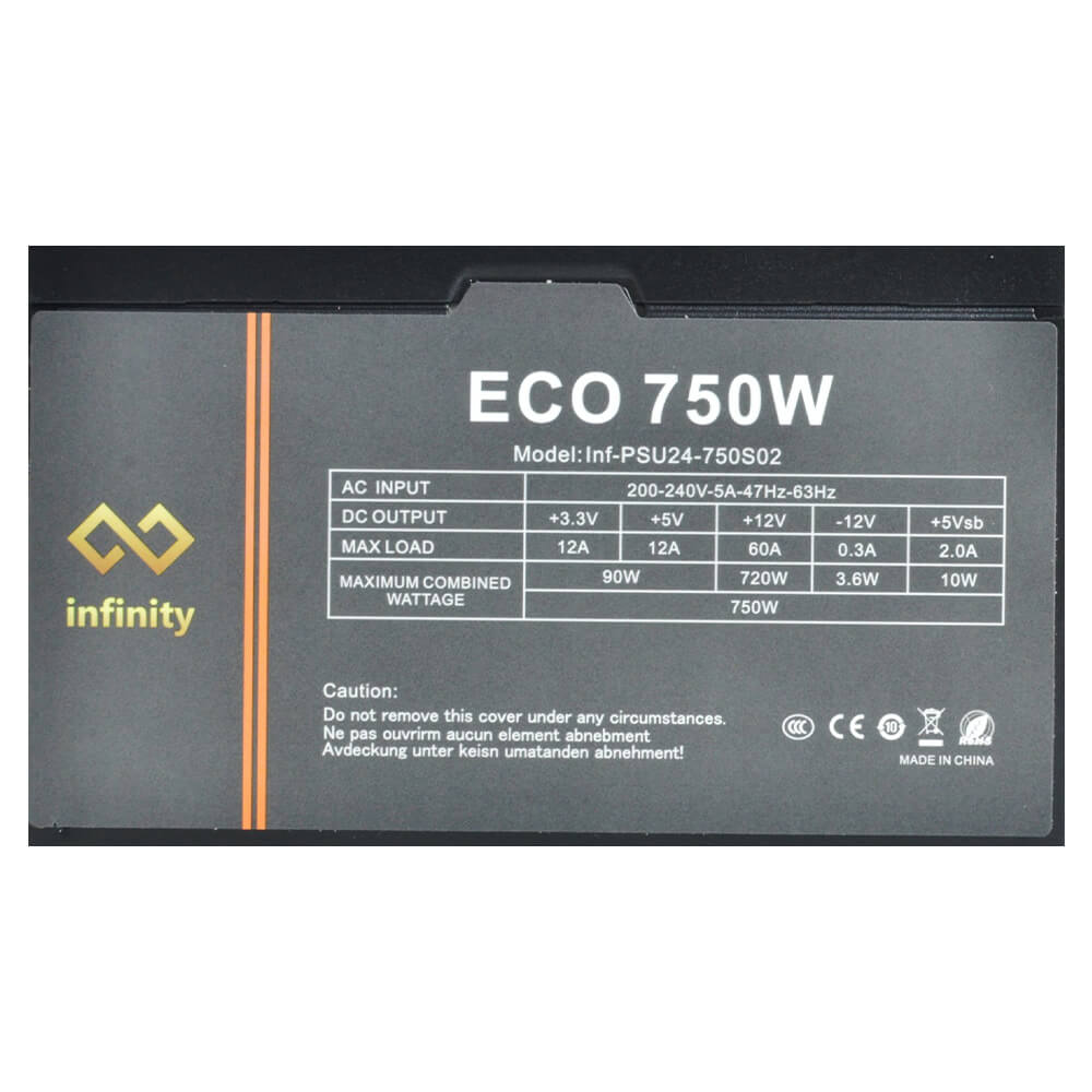 Infinity ECO 750W là sự lựa chọn cho các cấu hình phổ thông sử dụng 01 VGA có công suất <230W