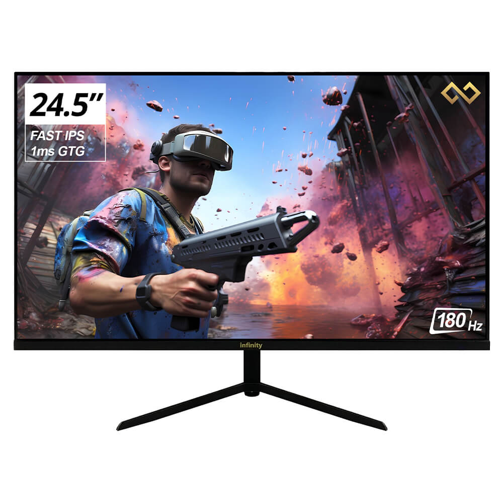 Với kích thước màn hình 24.5 inch và độ phân giải Full HD, Infinity Flash 25 cung cấp hình ảnh sắc nét và chi tiết, đồng thời tận dụng tấm nền IPS để cho góc nhìn rộng và màu sắc chân thực. Tần số quét lên đến 180Hz cùng tốc độ phản hồi chỉ 1ms giúp giảm thiểu hiện tượng nhòe hình và mờ hình trong các trò chơi nhanh.