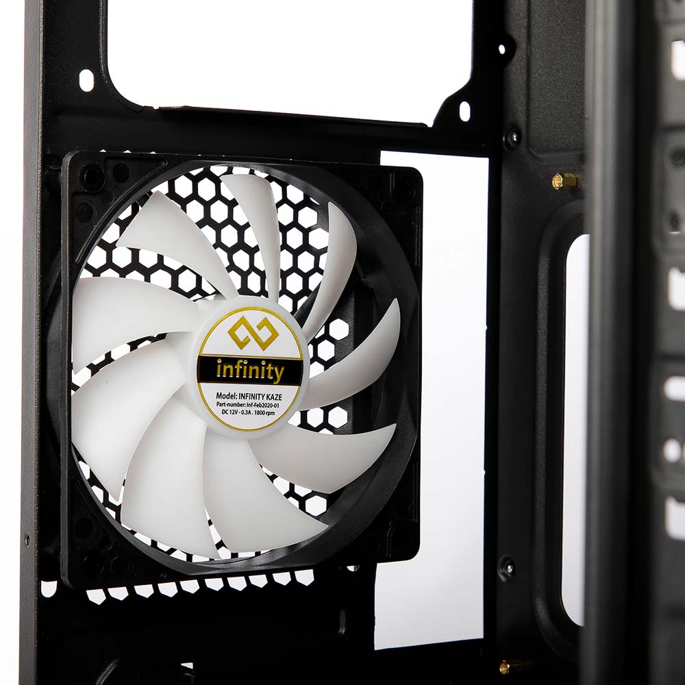 Mặt hông phía sau case Infinity N được thiết kế nhô lên ở giữa giúp việc đi dây sau case gọn hơn và không bị cấn dây.