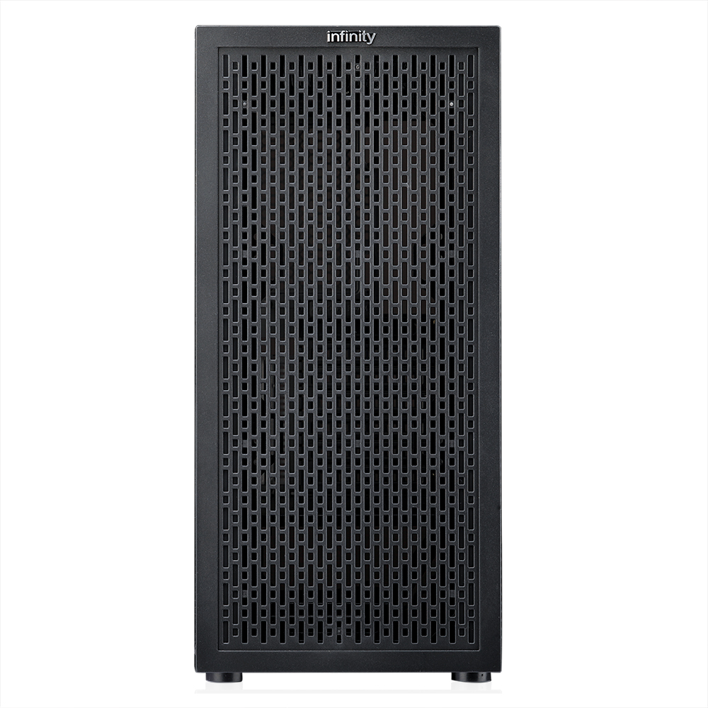 Phía trên là logo Infinity, mặt bên trái của case là kính cường lực trong suốt giúp case dễ dàng show tất cả nội thất bên trong.