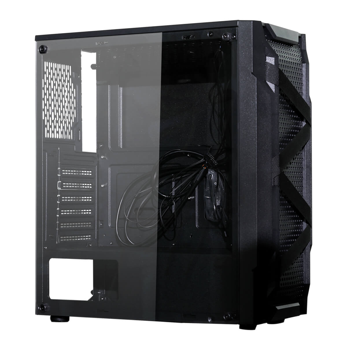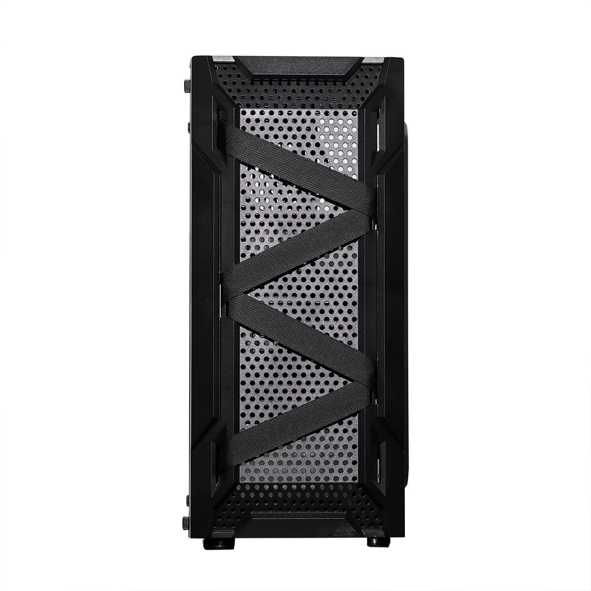 Về thiết kế Case Infinity Shield- ATX Gaming Chassis có mặt trước có lổ thông gió giúp đối lưu không khí và làm mát linh kiện bên trong mặt hông kính cường lực.